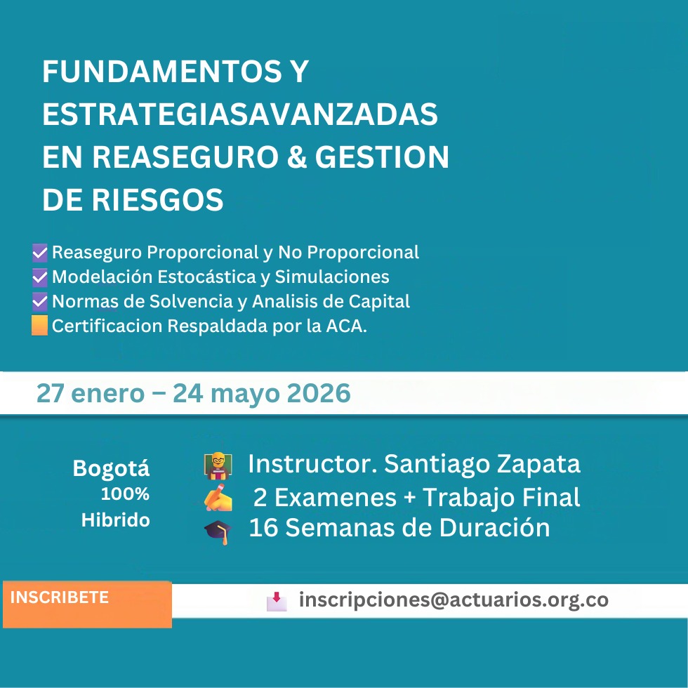 La Asociación Colombiana de Actuarios invita a su Curso de Preparación para el Examen SRM (Statistics for Risk Modeling), diseñado idealmente para aprobar el examen en mayo o septiembre de 2026.